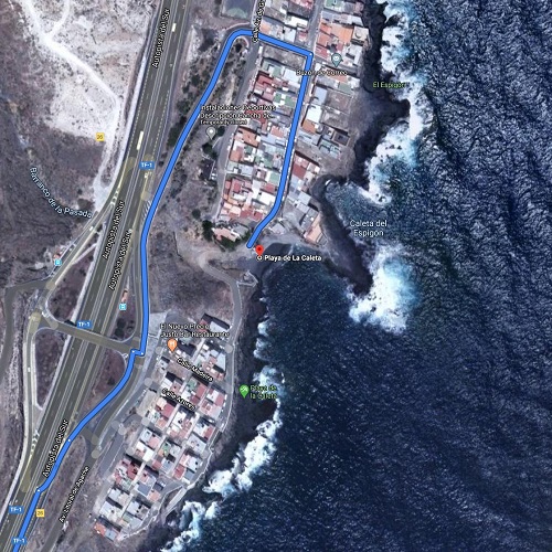 - ¿Cómo llegar?: Coges carretera TF1 en direccion santa cruz y te sales en el desvio La Caleta – Punta Prieta. Despues vas rescto hasta llegar al barrio y la segunda calle a la derecha (playa de la caleta)