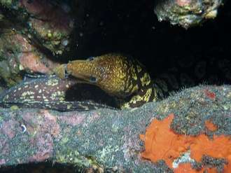 En la segunda inmersión iremos siguiendo la pared de roca volcánica donde nos encontraremos multitud de cuevecitas y grietas donde es muy común ver morenas, langostas canarias, cigala nararia y otro tipo de animales marinos.